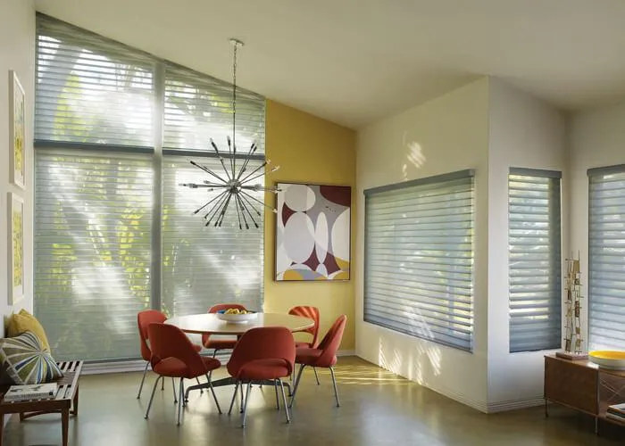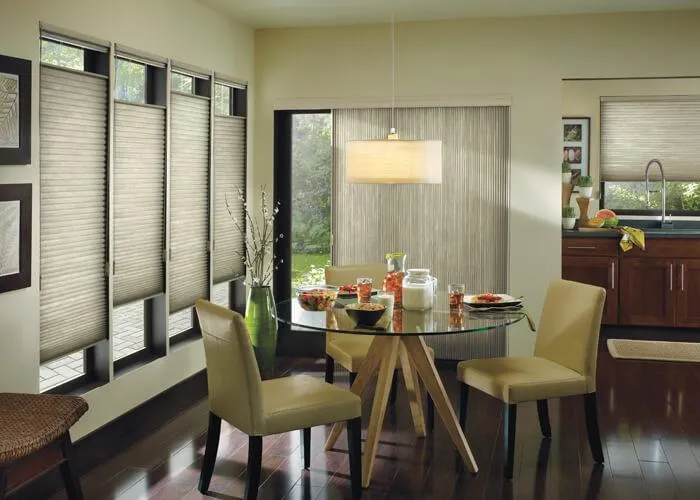 Our collection of shades are some of the most popular and versatile window treatments today. We carry an extensive line of beautiful fabrics, options and features, from pleated to cellular, and roller to Roman!
